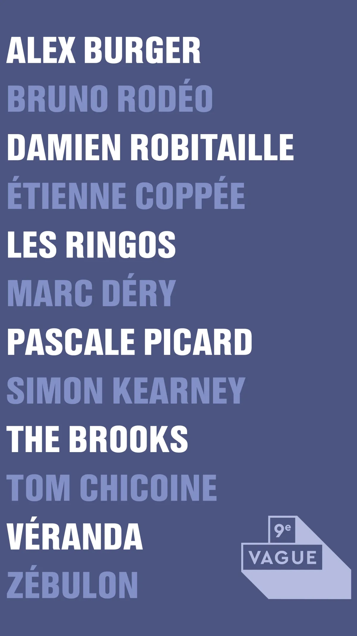 ALEX BURGER - THE BROOKS - BRUNO RODÉO - DAMIEN ROBITAILLE - ETIENNE COPPÉE - MARC DÉRY - PASCALE PICARD - LES RINGOS - SIMON KEARNEY - TOM CHICOINE - VERANDA - ZÉBULON